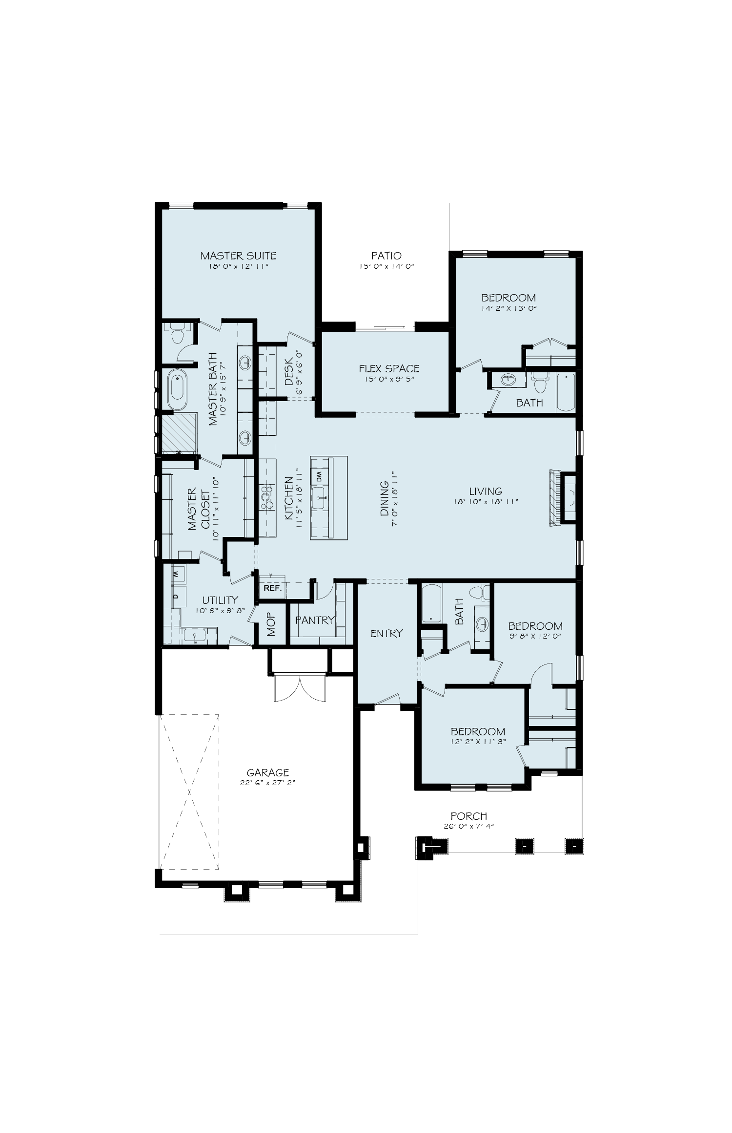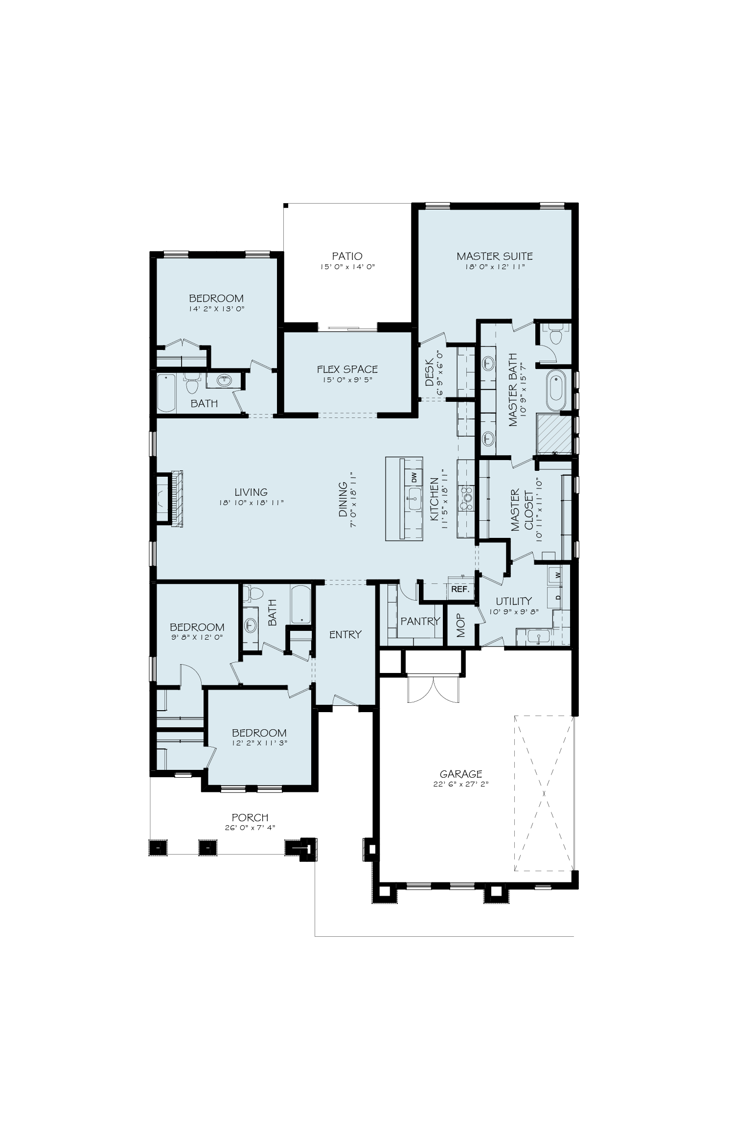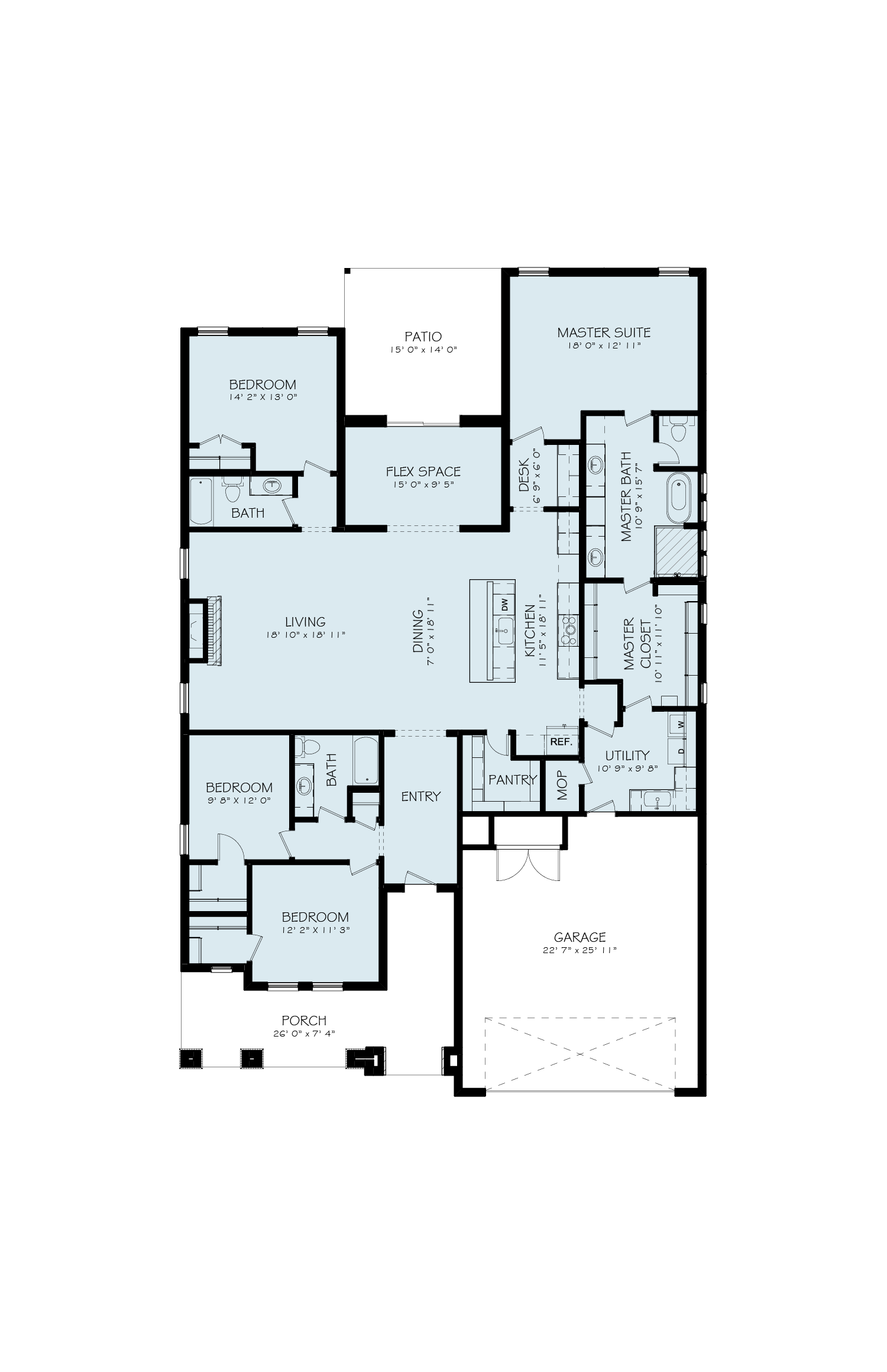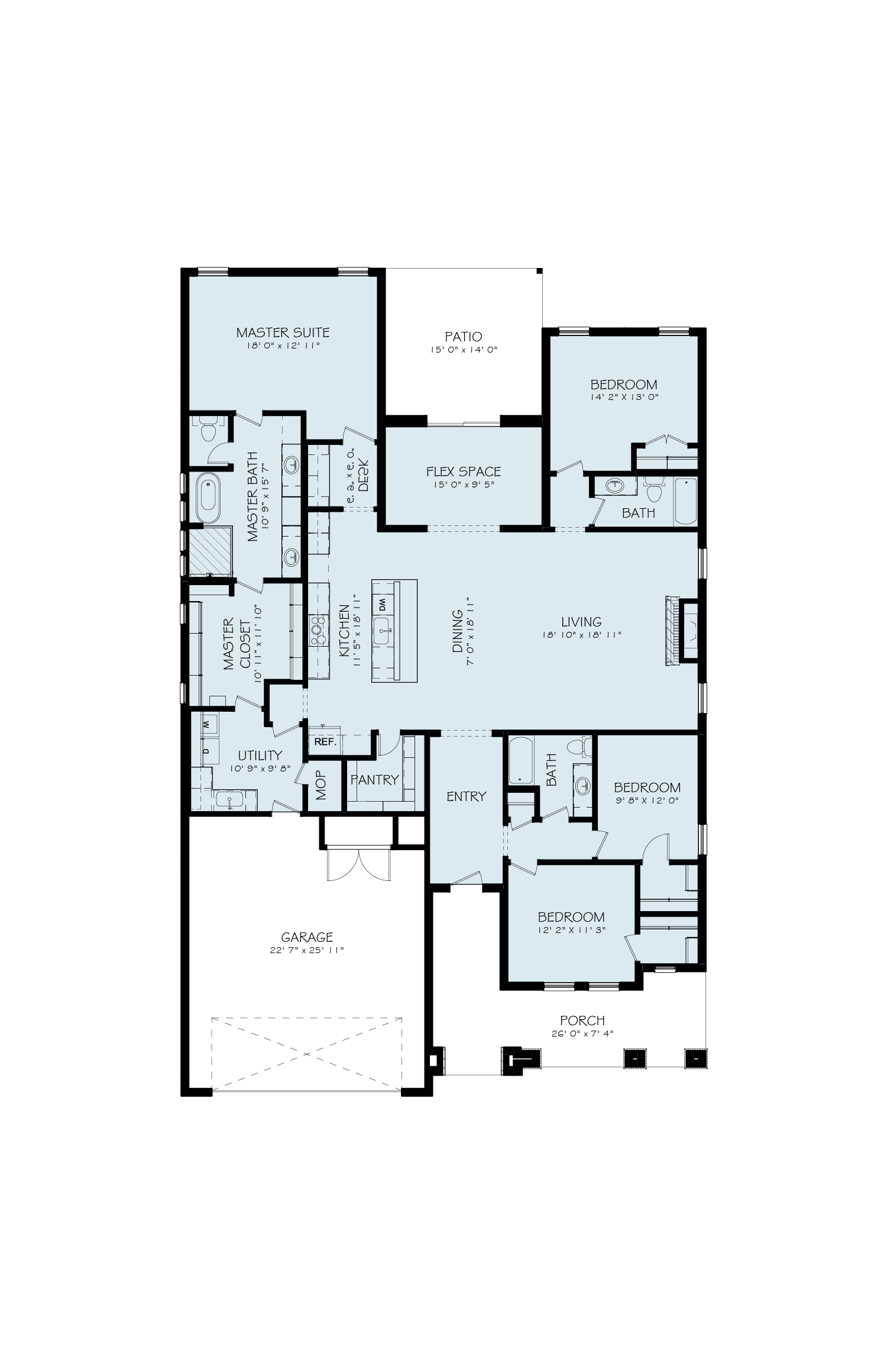 - Secluded master suite with garden tub, walk-in shower, his and hers vanities, and oversized walk-in closet with utility room access